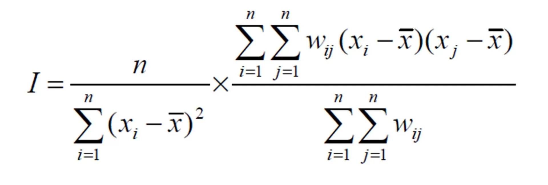 The well-known global spatial autocorrelation measure is the Moran’s I given by: