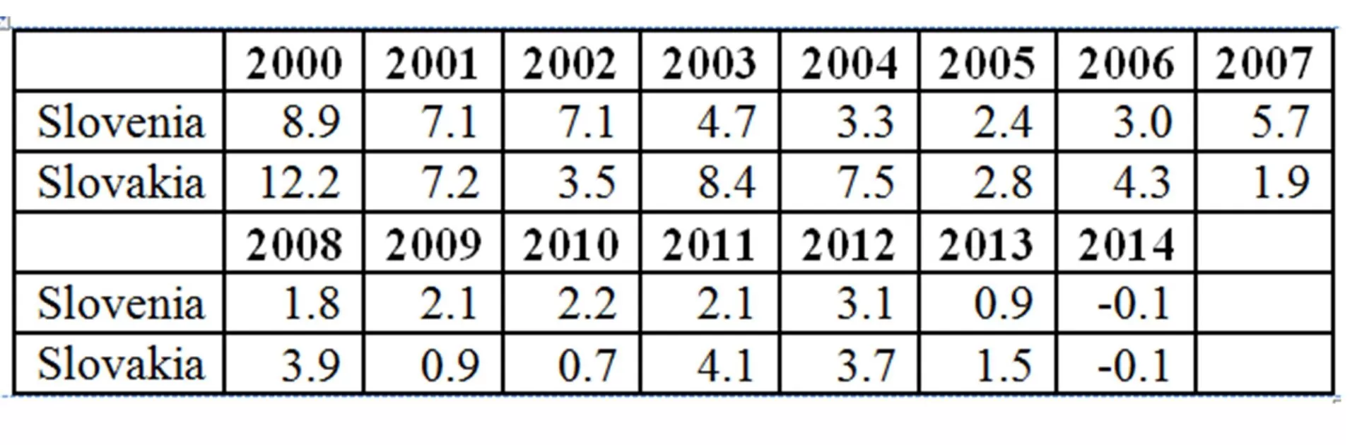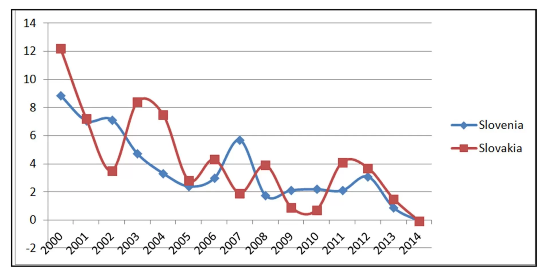 Table 6: Development of inflation in Slovenia and Slovakia (2000 – 2014)