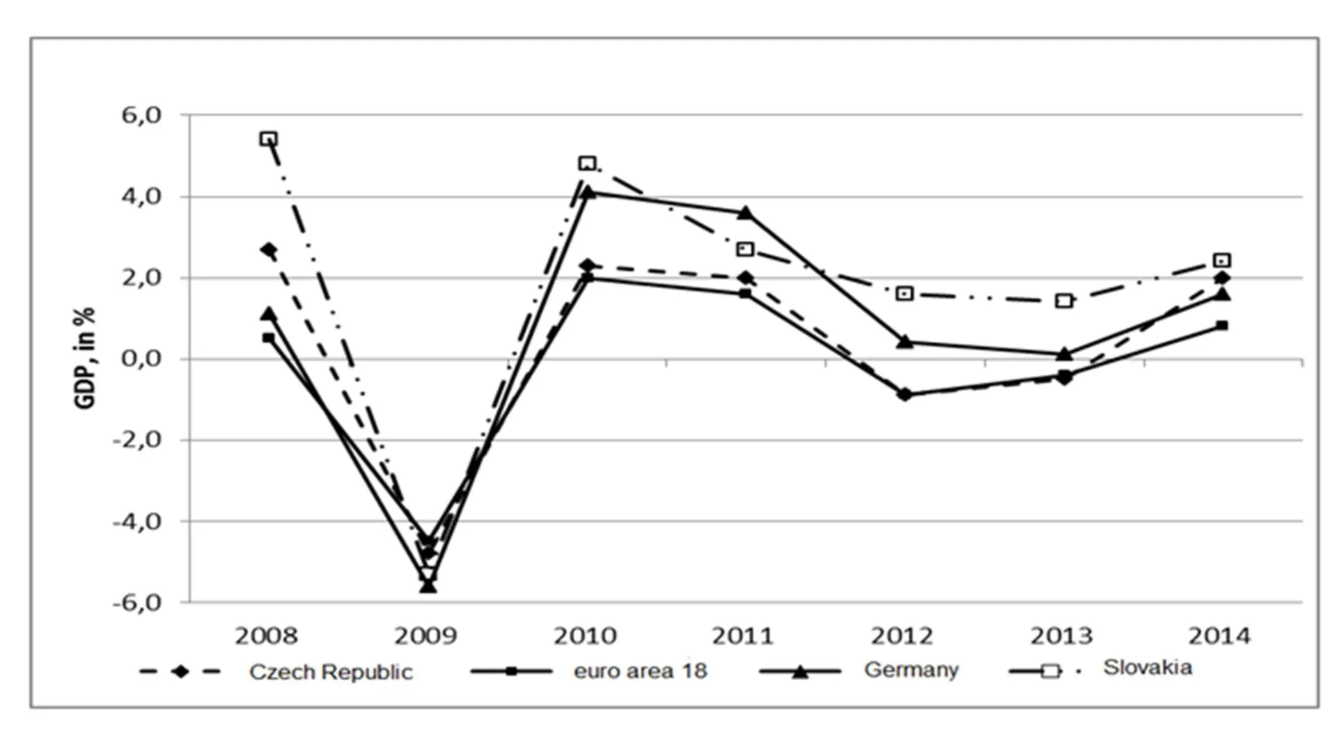 Therefore, the given change cannot be attributed to the financial crisis or the subsequent economic recession that started in the United States, later shifting to Europe, as the subprime mortgage crisis in the United States broke out during the summer of 2007; the banking crisis then broke out in the fall of 2008 (bankruptcy of Lehman Brothers on 15 September 2008). Some banks in Great Britain, German, Benelux, and Iceland started to experience problems at the time. However, the first year of recession in the EU was 2009.