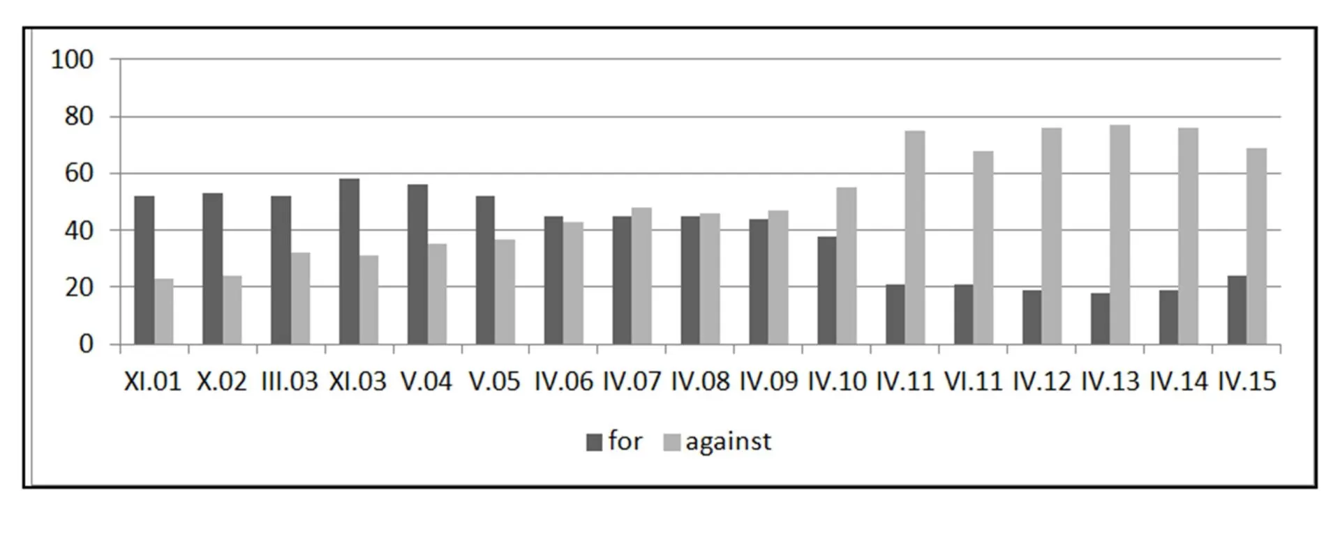 Therefore, the development of public opinion (= views of voters) is related with the negative position of the new political representation – not only to the euro introduction, but to the European integration as a whole The negative public opinion subsequently affected the decisions on further preparations for the euro introduction – these preparations were reduced. The lack of interest in the euro at the time was caused by the previous lack of interest in the euro. It is a phenomenon that is observed in the economics, e.g. with regard to the labour market development, described as the labour market hysteresis (current unemployment is caused by previous unemployment). With regard to monetary integration, the euro adoption hysteresis can be observed