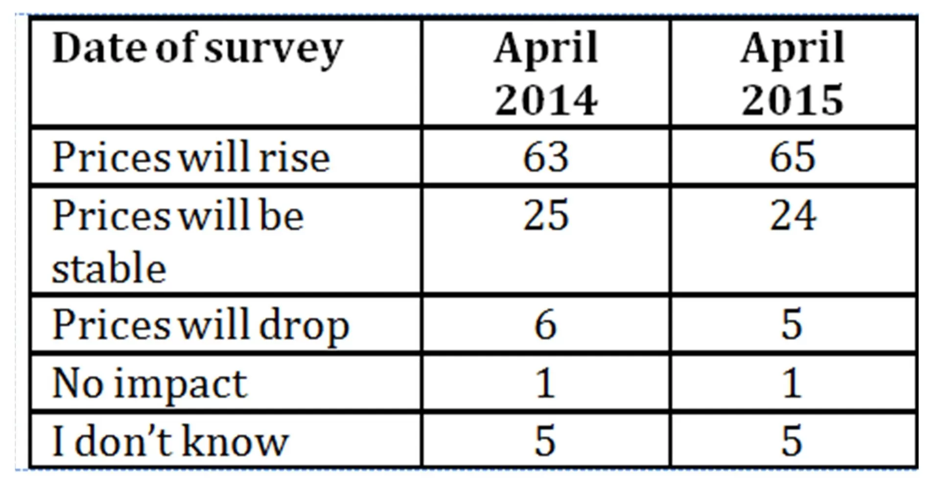if the value is +100, all believe that prices increased significantly,