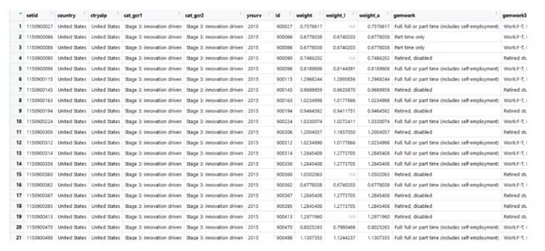 The purpose of the analysis is to see what factors influence a person’s decision to become an entrepreneur. The data set used has been downloaded from www.gemconsoltum.com and is presented as follows: