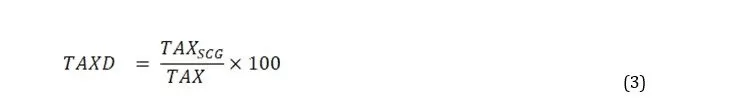 Tax revenue decentralization (TAXD) expressing the ratio of subcentral tax revenue (TAXSCG) to total general government tax revenue (TAX):