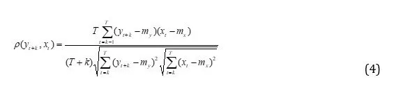 where is the correlation coefficient and mx and myare the means of corresponding series. The series can be related in three possible ways: (i)can lead (), (ii) can lag (). (iii) series can be contemporaneously related ().