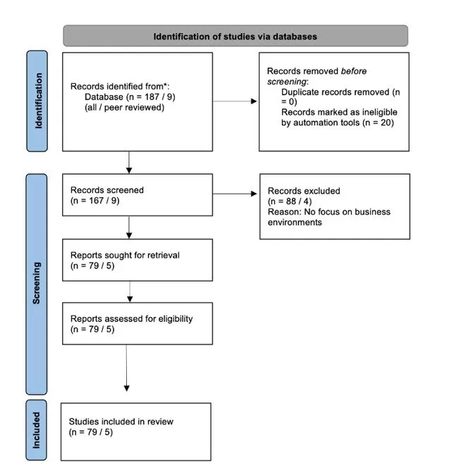 The final search delivered 167 articles including 9 reviewed articles. A manual abstract review was conducted by two independent researchers which resulted in the final list of 79 articles matching the set criteria.