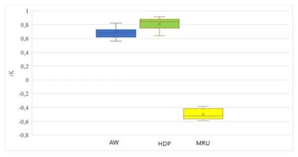 Fig 14. Comparison of correlation analysis results in BD (HDI vs. AW, HDP, MRU)