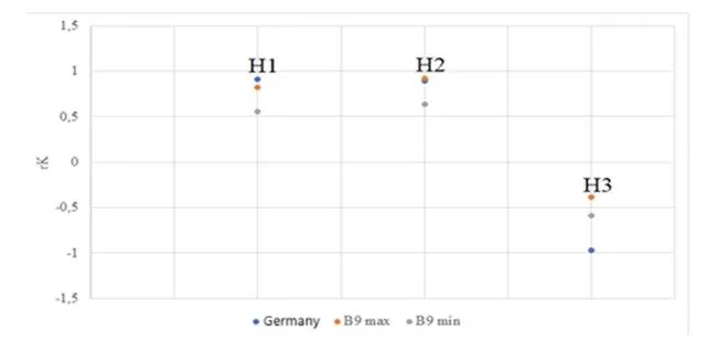 Fig 9. Differences in correlation analysis results in Germany and B9 – hypothesis 1