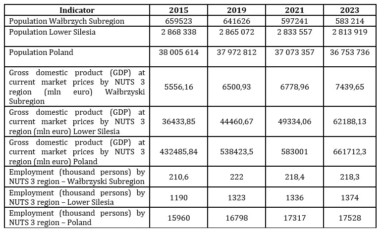 Table 1. Social-economic indicators of Wałbrzyski Subregion