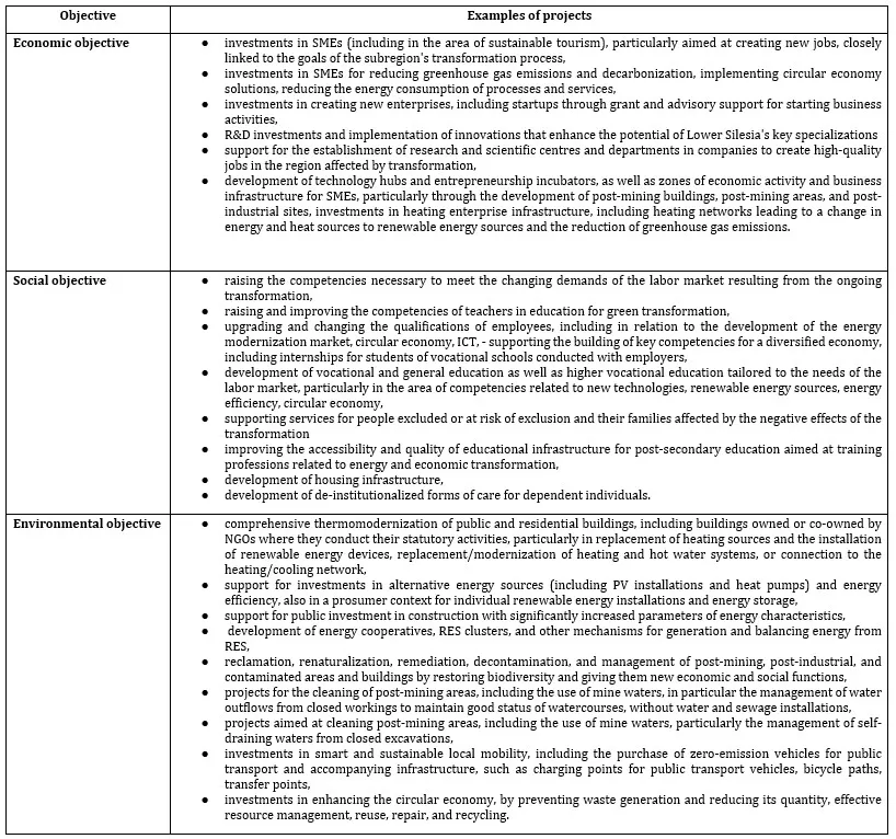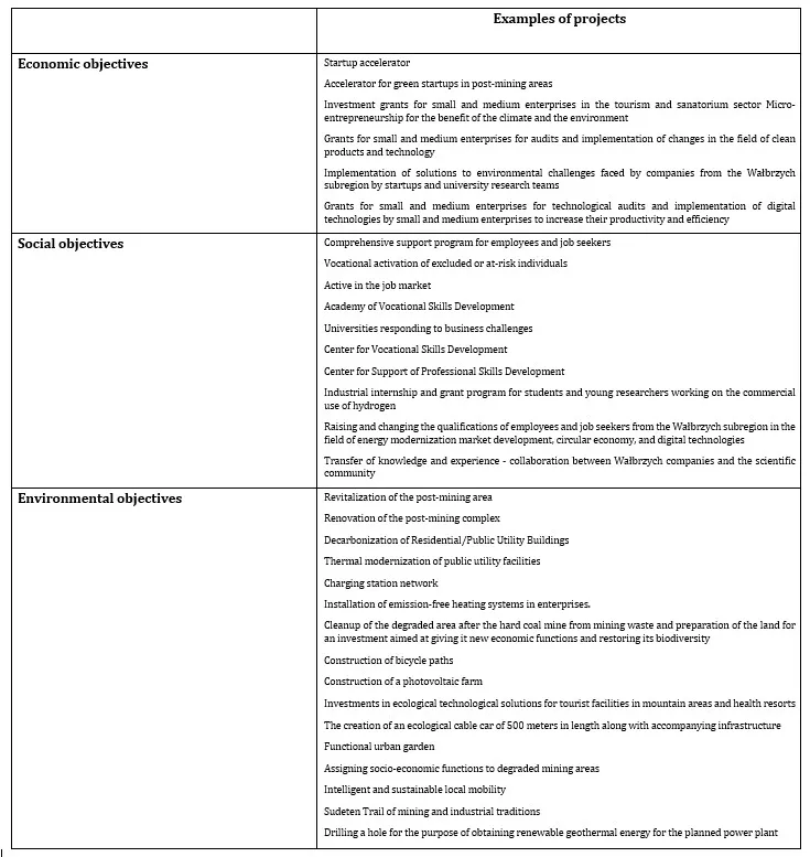 Table 3. Examples of projects submitted for financing Territorial Just Transition Plan for Lower Silesia 2021-2030