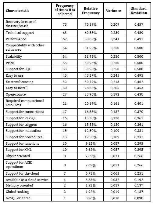 Table 4: Most valued characteristics in a DBMS