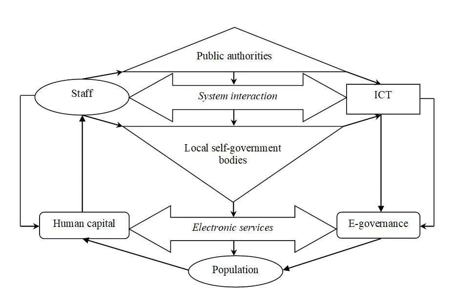 authorities and private enterprises / institutions / organizations, and the relationships between citizens and local self-government bodies. Here, we should accept the scientific view of Shcherbakov (2020) that the human capital in public authorities impacts on the human capital development in priority interconnected sectors of the economy, where e-governance is a process of improving the system of their interaction.