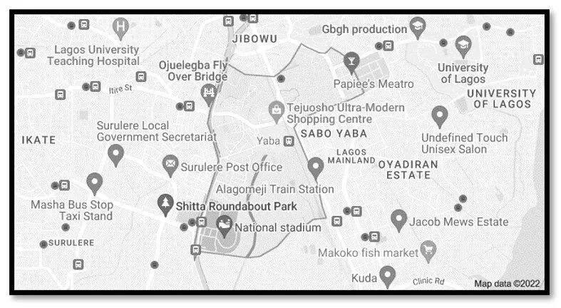 Fig. 1: A map of the Yaba suburb of Lagos, Nigeria.