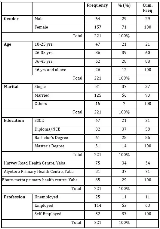 Table 1: Demographic Characteristics of Respondents (n = 221)
