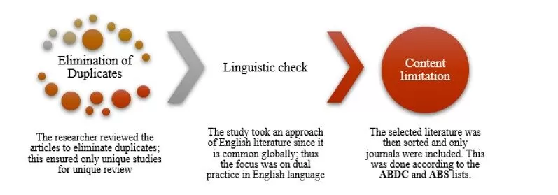 The screening procedure was carried out based on the articles’ currency (2014 to 2019). This subsection describes the method used by the research to analyze the research. The investigator evaluated the publications to remove repetitions, ensuring that only original investigations were examined. Because English language is widely used around the world, the investigation focused on DP in English. The reviewed publications were considered once the collected material was filtered. This was carried out in accordance with the ABDC and ABS listings.