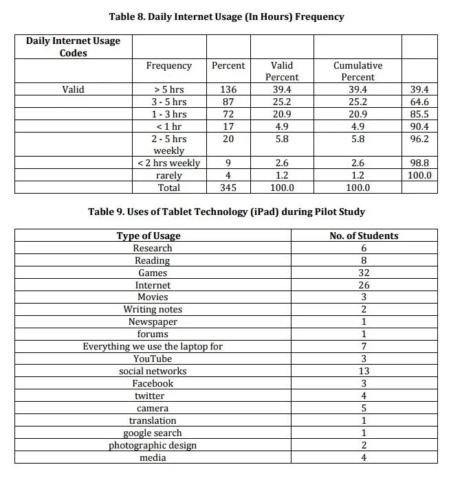 Here we try to focus our attention on the types of uses. As it is obvious from previous sections, we are only interested in studying the types of tablet technology uses by college level students, and hence it is going to be our study population.