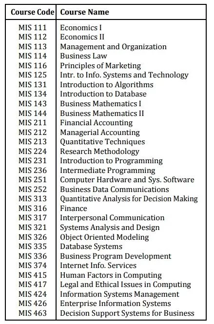 Table 1: MIS Department Course List