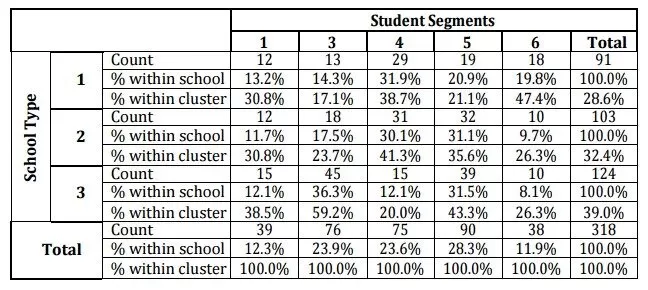 Table 5: Cross Tabulation of School Types and Student Clusters