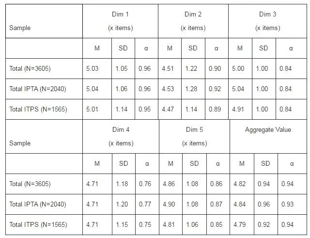 Table 2 provides overall results for mean values, standard deviations and internal consistencies (Cronbach’s alpha) for the total and as well as for a subgroup (IPTA-public and IPTS-private owned universities) sample of ALUS model. For the comprehensive dimensions, Cronbach’s alpha is 0.94, which indicates high largely internal consistency 26 items representing the customers’ satisfaction factor. The Dim1, Dim2, Dim3, Dim4, and Dim5 are sufficiently internally consistent because Cronbach’s alpha meets the criterion of 0.70 value. The values for the total sample are 0.96, 0.90, 0.84, 0.76, and 0.86 respectively. Meanwhile, the values for the subgroup (IPTA and IPTS) almost same, except for Dim3 with slightly difference (IPTA=0.92, IPTS=0.89).