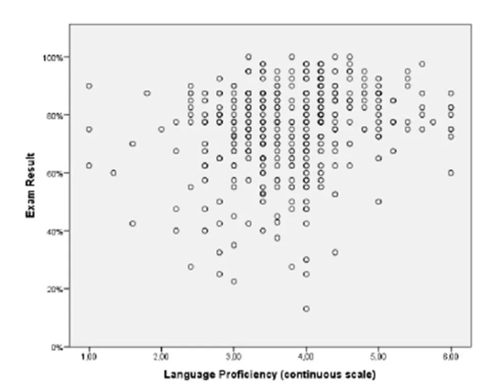 Figure1: Scatter plot of Language Proficiency versus Exam Result