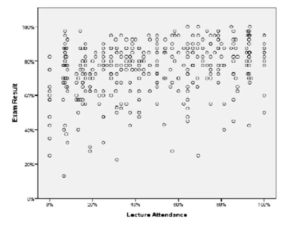 Figure2: Scatter plot of Lecture Attendance versus Exam Result