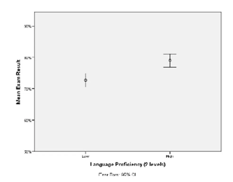 Figure 4: Graph of Mean Exam Results for 2 levels of Language Proficiency