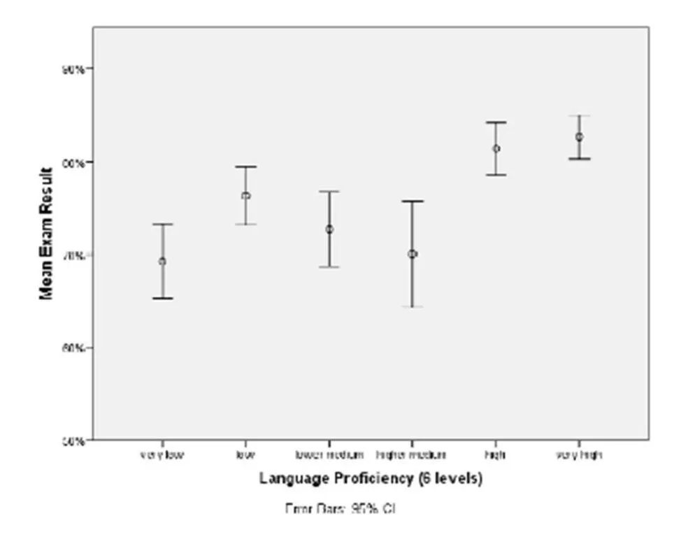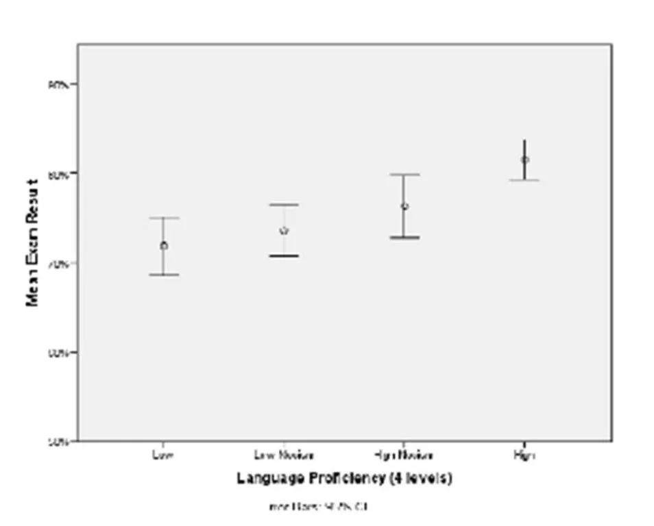 Figure 6: Graph of Mean Exam Results for 4 levels of Language Proficiency