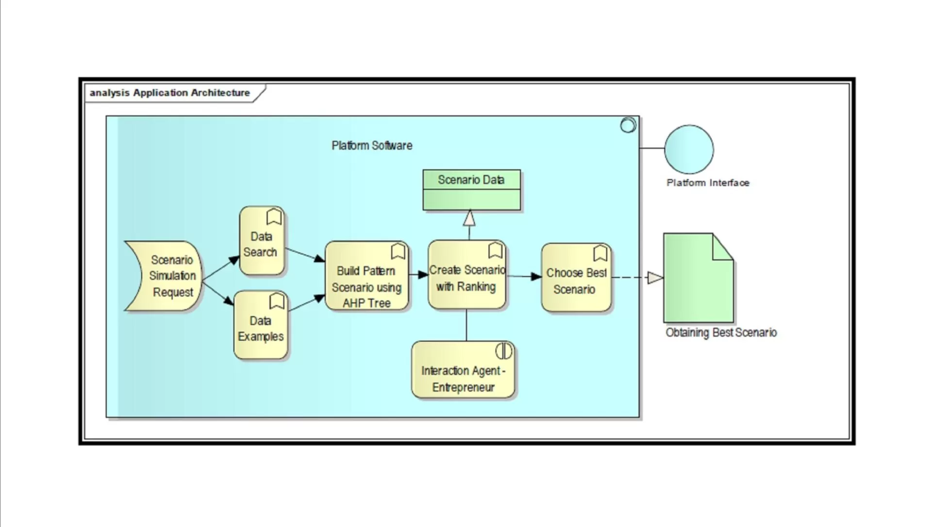 From the Scenario Design point of view, it must take care of several tasks like: to claim a creation of a business scenario, to make an initial proposal for a scenario, to modify the submitted scenario according to the suggestions offered by the PSD, to obtain a business scenario that is very possible to work in the real world.