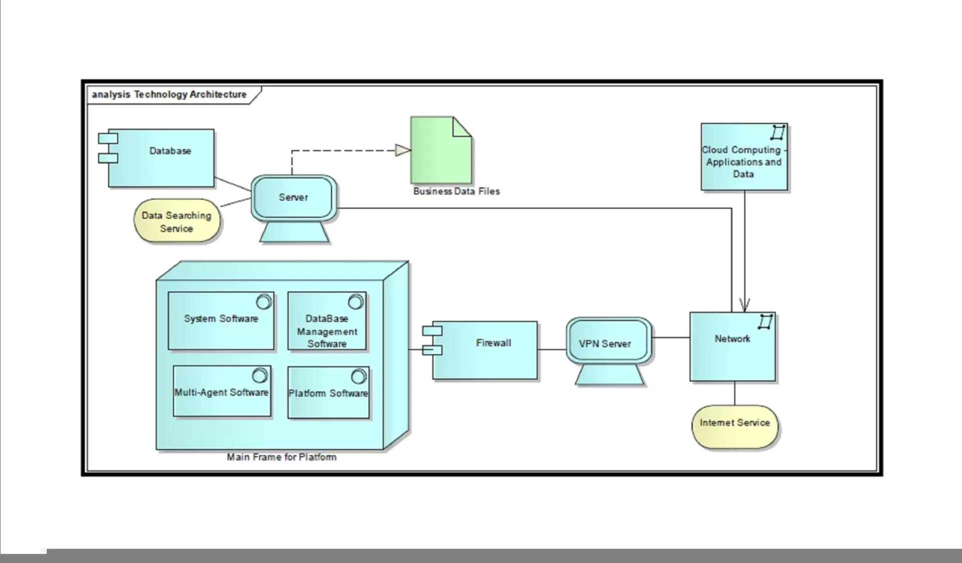 The components of the technology architecture are the following: – Software components: System Software, DB Management System, Multi-Agent Support Software and Platform Software – Network and server components