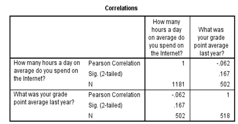 Figure 1: Correlation between the time spent on the Internet and the average grade point