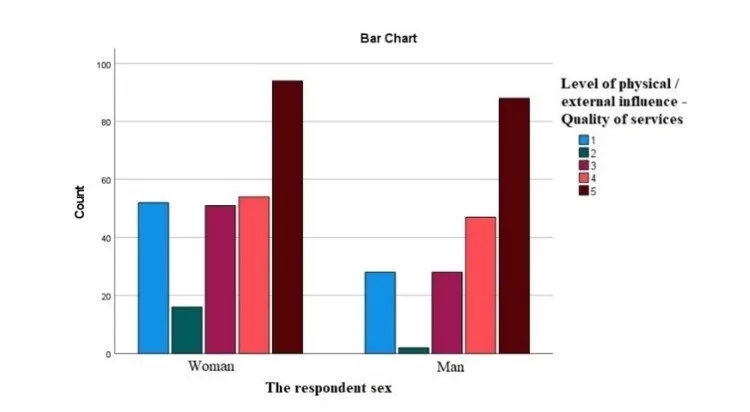 H3a. The strongest factor of physical influence is represented by the level of quality of services provided and (H3b) shows a statistically significant difference depending on the sex of the respondents;