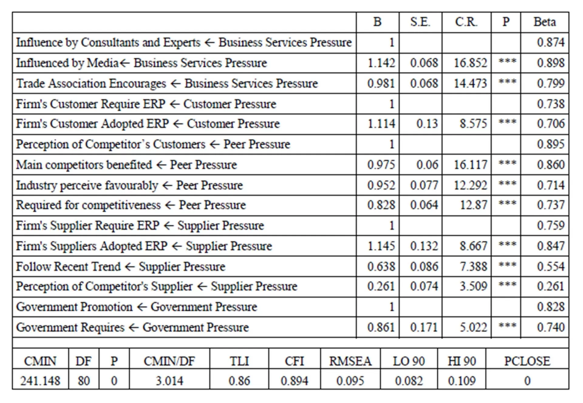 This study has contributed to the empirical validation of the mediating role of absorptive capacity for cluster’s Institutional isomorphic pressure towards ERP adoption and their direct influence. The outcome of the study is a validated model of the motivating factors for ERP adoption of a SME knitwear garments cluster. The results direct at a possible solution to address the gap in creating a motivation for ERP adoption. To practice, this study reiterates a need for agencies and the universities in and around the cluster to take up ERP curriculum to develop ERP professionals and train the employees in ERP.
