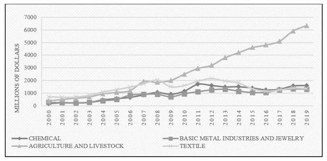 For the development of this research, the methodology of the IBCR and IB was applied, which is based on various theories of comparative advantages that have emerged over the years. As a result, a study was conducted based on thirty-two products, as mentioned above.