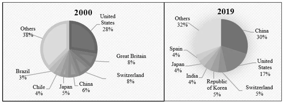 Figure 4. Peru: Major export destinations, 2000 and 2019 (in percents)