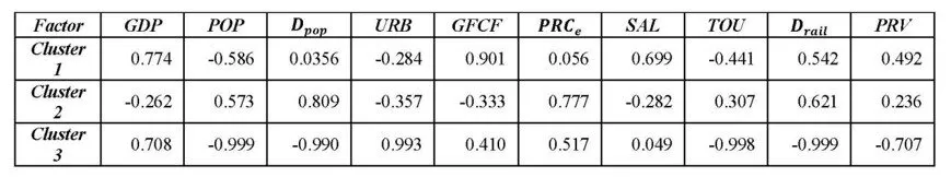 Table 4: Matrix of correlation coefficients between FARE (Y) and factors in the context of clusters.Source: calculated by the author