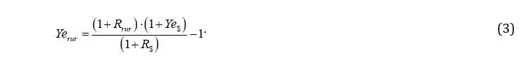 The transition to the rouble norm is carried out, taking into account the assumption that the excess of the absolute value of the rouble cost of capital (Yerur) over the US dollar (Ye$) is equal to the excess of the yield of Russian government long-term bonds denominated in roubles (Rrur) over the yield of Eurobonds (R$), and is made according to the formula: