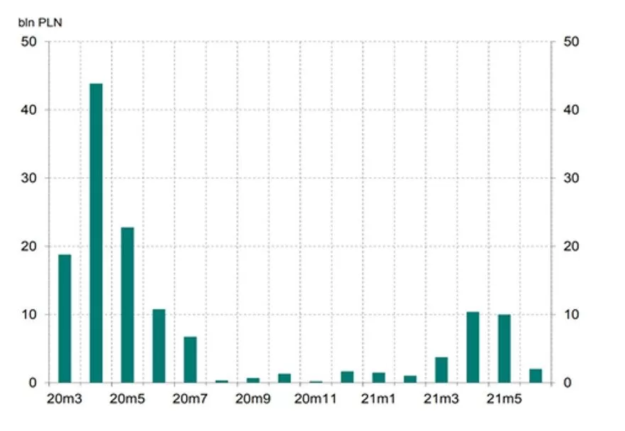Fig. 3: Structural open market operations conducted by NBP in nominal value, monthly (March 2020 – May 2021)