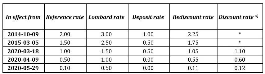 The second development was an update to interest rate policy in spring 2020. The NBP’s basic interest rate was changed three times by the Monetary Policy Council (MPC) in March, April, and May to reach the lowest ever level after five years of stabilization (Tab. 2). This represented a definite departure from the central bank’s policy of stabilizing interest rates in order to fuel inflation-related pressures. From March 5, 2015, to March 18, 2020, Poland’s monetary authorities kept the reference, lombard, deposit, and rediscount rates constant at 1.5%, 2.5%, 0.5%, and 1.75% respectively. Such a long period of the central bank’s interest rate freeze can not be rationally justified when we take the changing economic landscape into consideration. It is hard to justify the claim of the necessity to provide financial stability to businesses when we consider how highly volatile the other economic parameters were, such as the fluctuating economic growth and the increasing domestic inflation developments. As denoted by the end of this period, there were signs of rising inflation, so as dictated by orthodox monetary policy, a rise in interest rates was to be expected. However, what followed was a significant drop in rates caused by the need to counteract economic collapse caused by the Coronavirus pandemic and to cooperate with the government as part of the government’s economic recovery plan (to support its subsequent anti-crisis shield programs).
