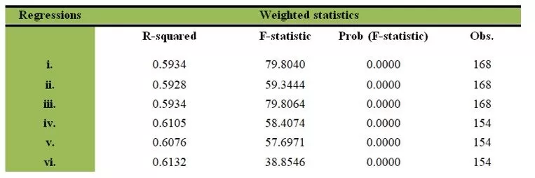 Table 5. Weighted statistics of Panel EGLS (Cross-section random effects) regressions