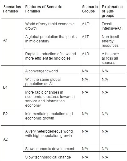 Table 1. Scenario Families of Intergovernmental Panel on Climate Change
