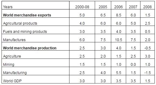 Table 2: Growth in the Volume of World Merchandise Exports and Production, 2000-2008