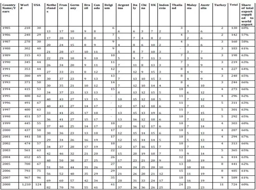 Table 1A: Food Exports in the World from 1985 to 2008 (billion $)
