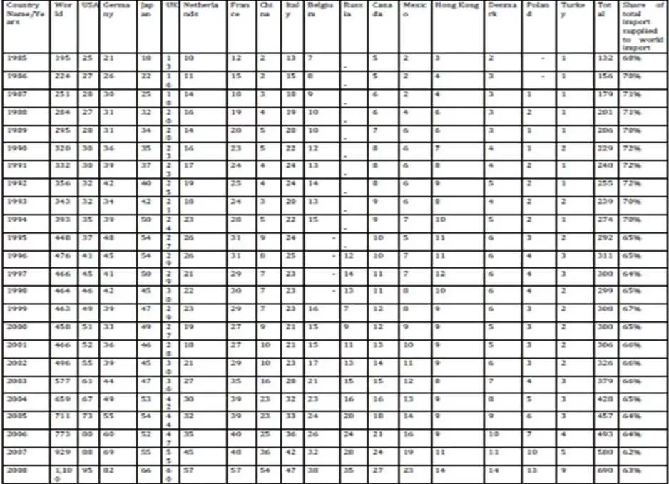 Table 2A: Food Imports in the World from 1985 to 2008 (billion $)