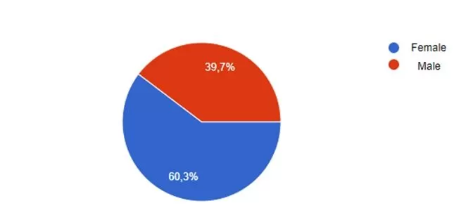 Fig. 2 presents the analysis of the first question. The questionnaire was made in Portuguese language. The female gender is the predominant gender, representing 60.3% of the total sample.