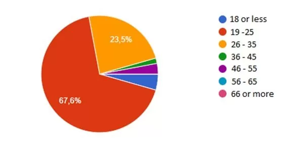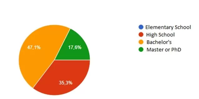 The second level of education with the highest number of answers was the High School with 35.3% of the answers, while the Master’s or PhD degree was the educational level, with the lowest number of results, with 17.6% of the answers obtained.