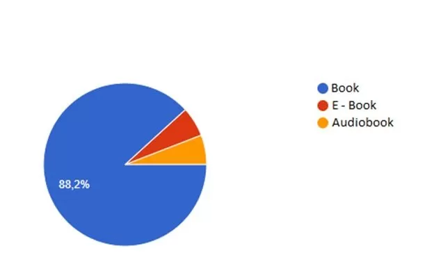 The format with the largest number of answers was the printed book with 88.2%. The audiobook and the E-book appear in the second position, both with 4 replies each.