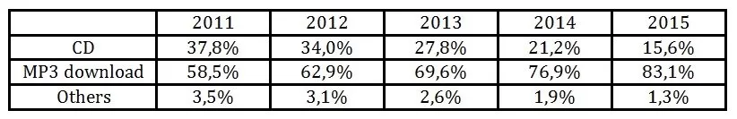 The information presented in the table is up to the year 2015, but it is possible to verify the increase in consumption of the download format, this is due to the fact that the download format is cheaper than the physical format because there are no inherent costs of manufacturing, stock, packaging and transportation (Richards, 2017).