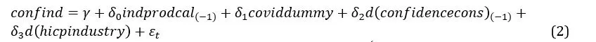 In the second econometric model performed, we found that the COVID-19 shock reduces dramatically the confidence in the industrial sector. According to our results, the shock caused a shrink of the EU industrial confidence index by 12.862 deviation points. We have also found a positive relationship between the confidence in the industrial sector and the consumer confidence, since any drop in the demand will limit the producers supply.