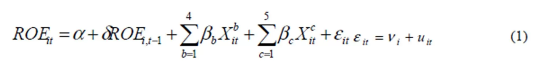 where ROEit is the profitability of bank i at time t, with i=1, . . .,N, t=1, . . ., T; αis a constant term,ROEi,t-1 is the one-period lagged profitability, δ is the speed of adjustment to equilibrium, ’s are the explanatory variables (specifically, denotes (supervisory) board characteristics while stands for control variables), εit is the disturbance, with νi the unobserved bank-specific effect and uit the idiosyncratic error.