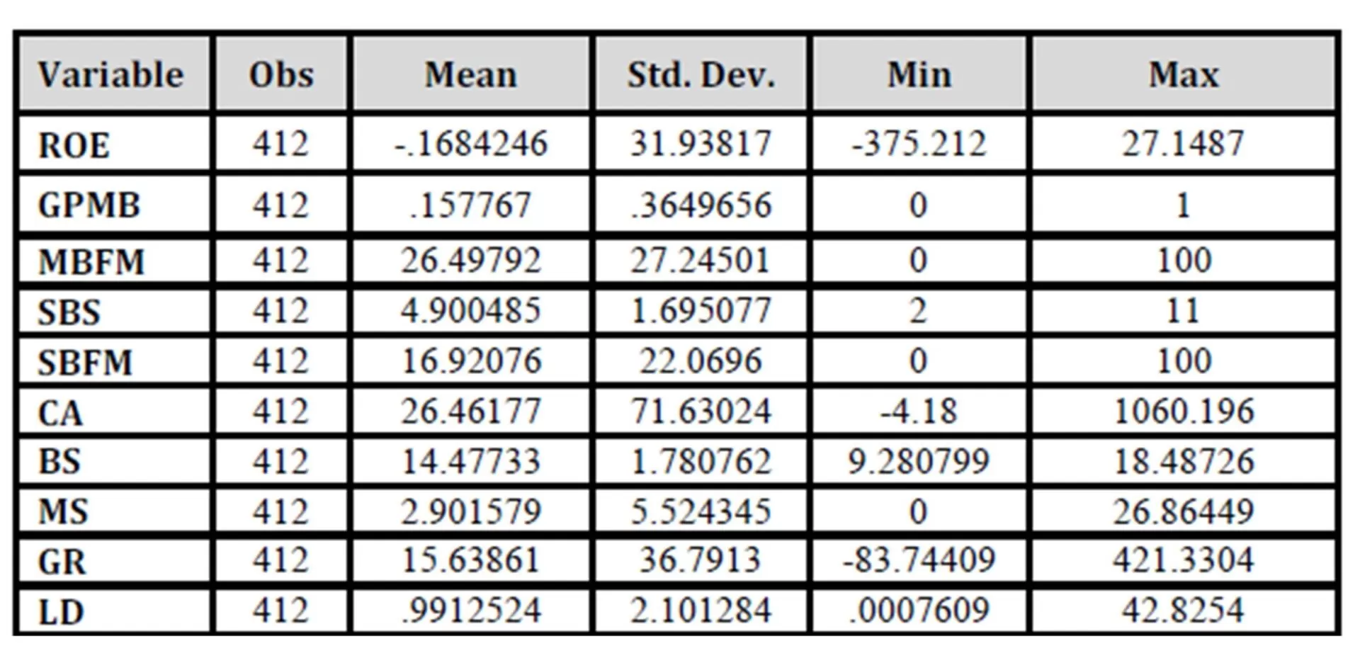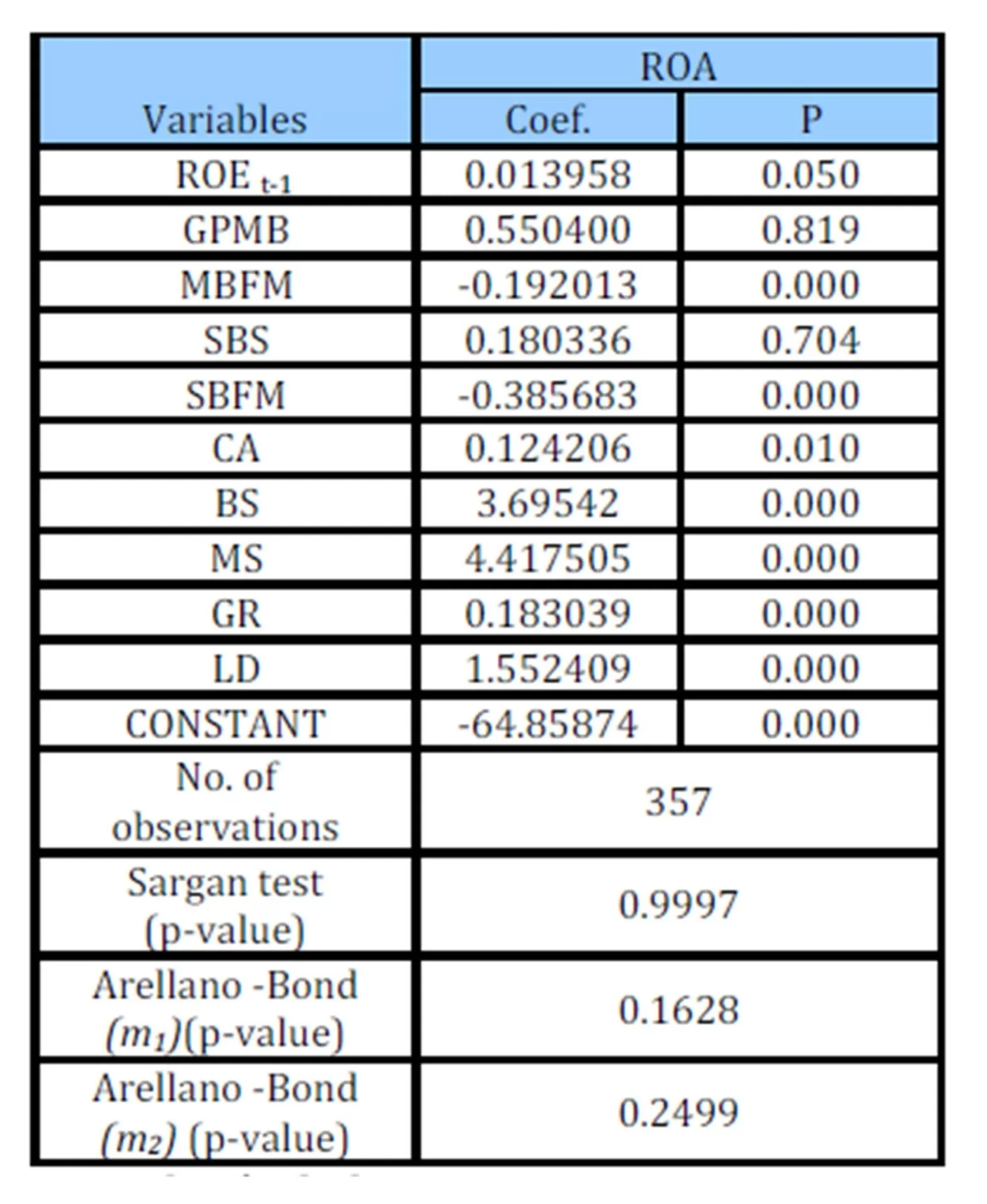 In order to assess the influence of board structure on banks’ performance, a return on equity (ROE) as a dependent variable (i.e. measure of bank performance) was employed in the model.