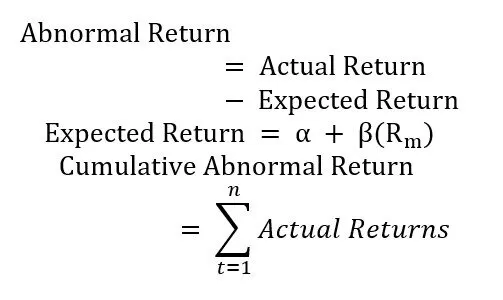 The abnormal returns and cumulative abnormal returns are calculated using the below formulas.